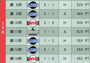 2勝1分4敗で14位…………_| ̄|○