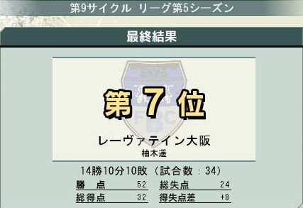 つーか最終戦、開始20分で相手の☆7CBがレッドカードで退場したのに1-0から逆転負けするとか納得いかねーw
