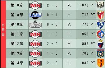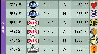 2勝2分3敗だけどなんとか1位キープ。