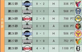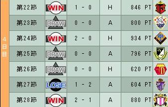 第28節にて増嶋引っ込めて☆2SDF近藤いれてFWにジウシーニョ入れることでなんとか生き返りました。