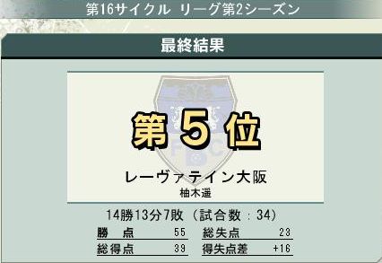 1位とは勝ち点差11も開いてしまったけどなんとか5位フィニッシュ。