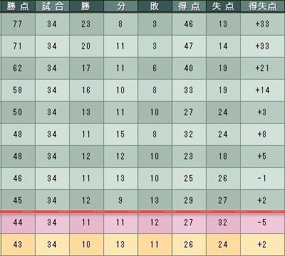 2勝1分4敗で14位…………_| ̄|○