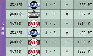3勝2分2敗で5位でした。