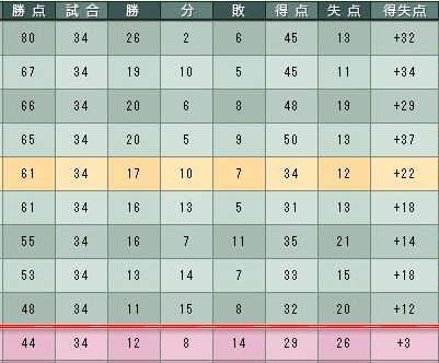 でも優勝チームは引き分けが少ないね。